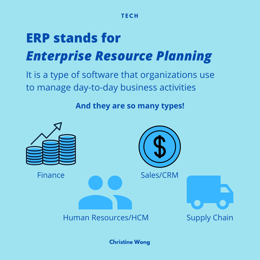 Do you know what an ERP is? I’m actually a Workday Financials functional consultant, and I do software implementations on Workday. Workday is also an ERP system. A lot of what many companies already have are ERPs, and more than ever due to the pandemic, CLOUD ERPs are taking off. And that’s exactly what Workday is!