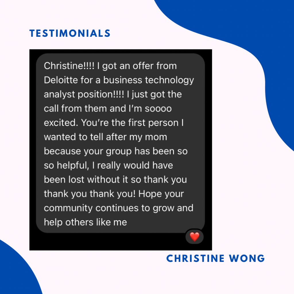 Yet another success story! I wanted to share to you all of the success stories of landing a job or internship in technology consulting as a result of my content and community!