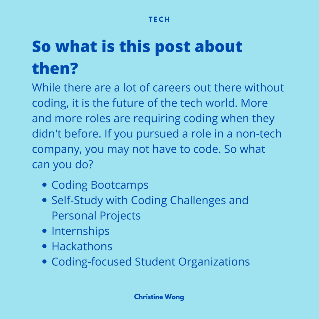 I did an Instagram reel before on 8 tech jobs without coding, and unfortunately the caption (that had a lot of tons of caveats and notes) dropped due to a glitch on Instagram, but many thought the roles I mentioned did require coding so I made this instead.