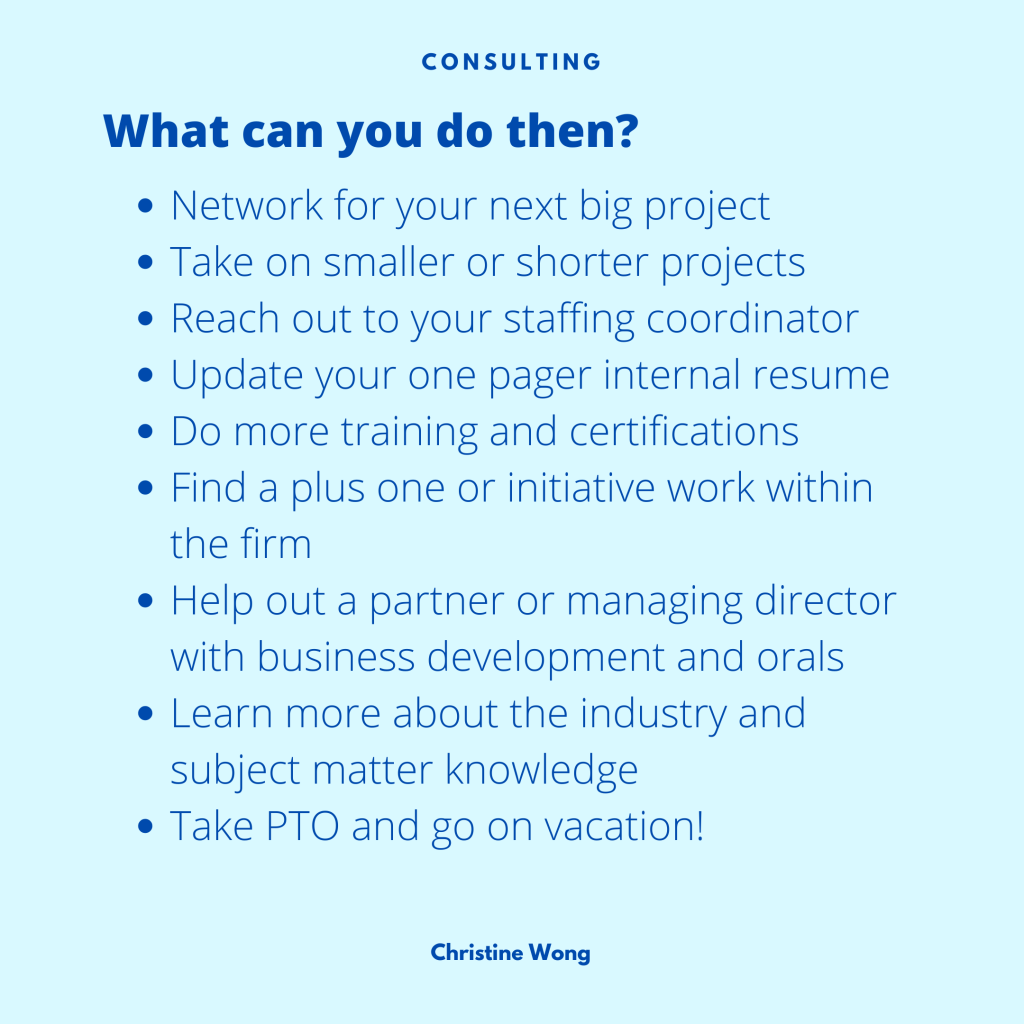 Did you know, in consulting, it is possible to not always be working on a client project? We call that on the bench or on the beach as some firms call it.