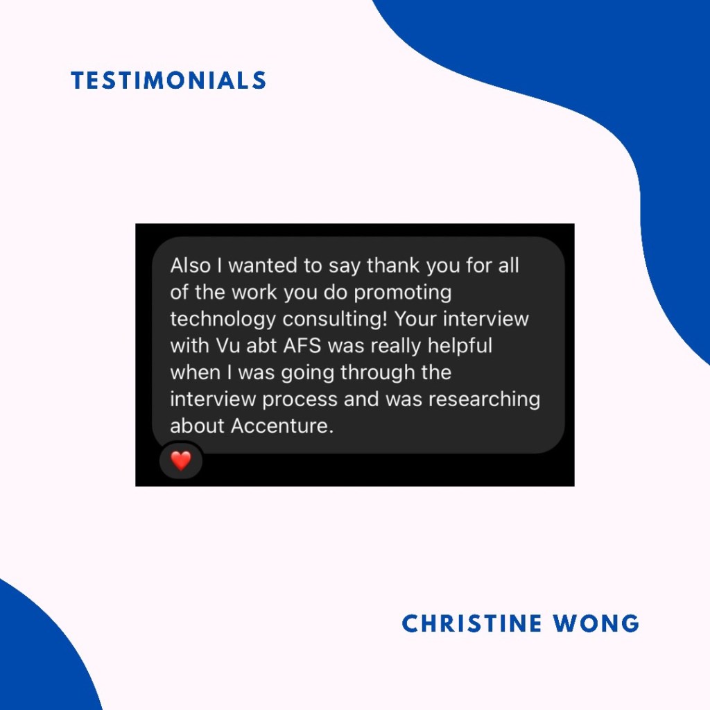 Follow me on Instagram at @christine.innovates for more! I go over technology consulting, technology, consulting, careers, and also my own personal stories and narratives as a young working professional!