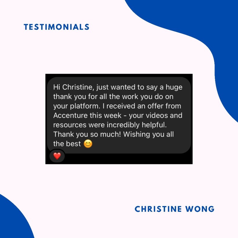 Check out my YouTube channel for video content focusing on technology consulting, consulting, careers, professional & personal development, and money for the young working professional! https://youtube.com/c/ChristineWong