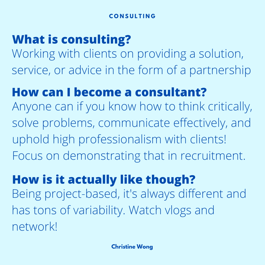 Follow me on Instagram at @christine.innovates for more! I go over technology consulting, technology, consulting, careers, and also my own personal stories and narratives as a young working professional!