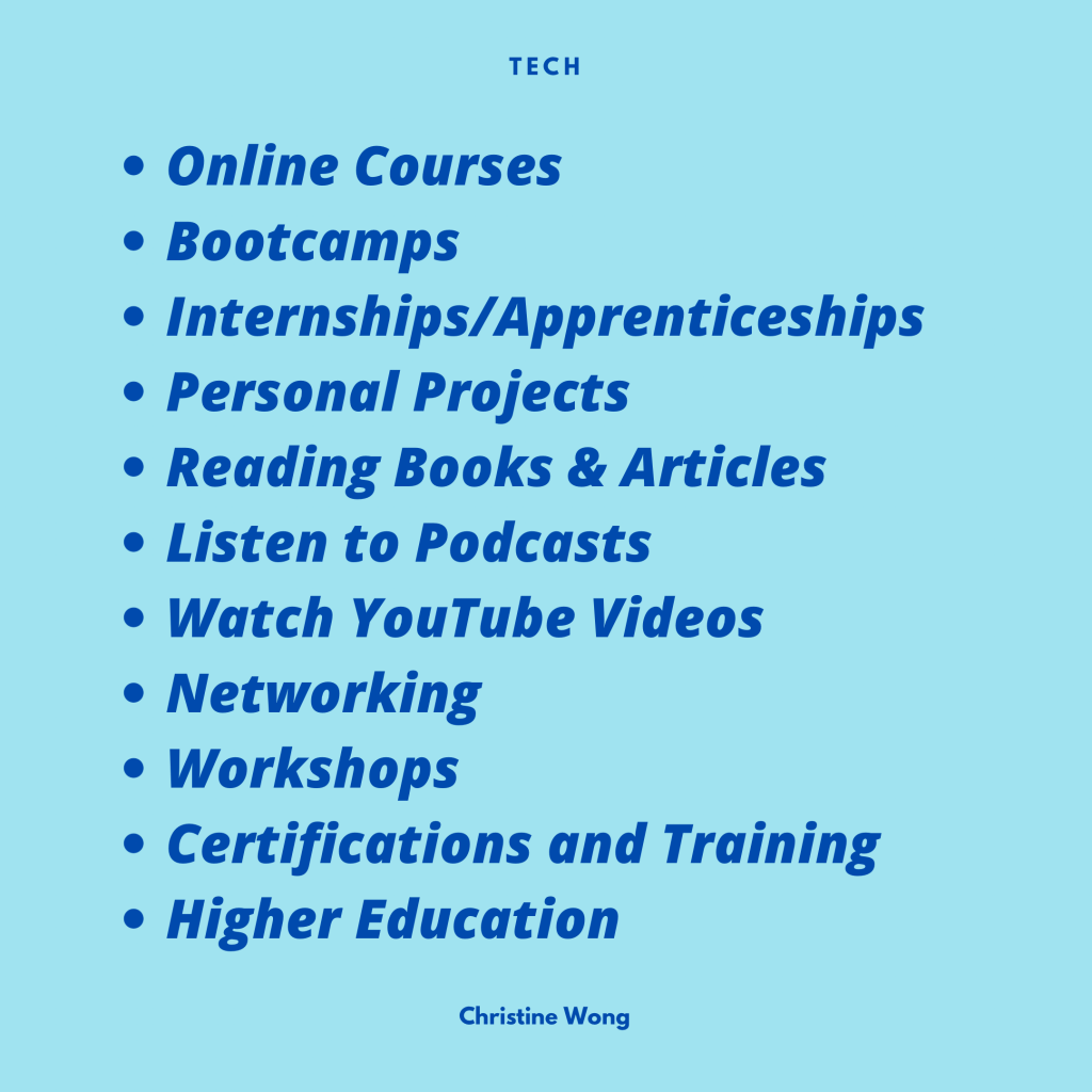 For some reason when people ask me what they can do to learn and upskill in tech, most of the times the paid courses and training or higher education is the first thing that comes to mind. However, look at this list! MOST of this is free and accessible to anyone that has access to a device that has Internet connection!